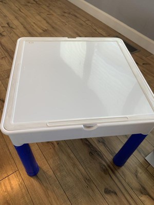 [This review was collected as part of a promotion.] I have a 5 year-old kid and my kid loves to play specially on a table. My kid was excited to see what was in the box and that at the very moment it was built, my kid moved from playing on our center table in the living to room to this table placed in my kid's play area. Even my 12 year-old play on it. My older kid says the table is great for both because my kid can draw ideas on the white board and because my younger one also loved doodling. The connecting things became like a builting block for my younger one's other toys as a garage.