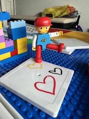 [This review was collected as part of a promotion.] It is a very didactic, entertaining and fun game set for my children. They can practice creation skills by designing fun and colorful structures. It is a game that stimulates motor activity and concentration and has undoubtedly been very entertaining. The package includes the table that is completely disassembled with storage space inside and is easily assembled by a small child, it also contains a large number of lego blocks, pieces with different geometric figures with magnets for the creation of structures, a book with ideas for designs and how to create them, the top of the table to anchor the blocks is disassembled and on the other side, besides being magnetic, it works as a blackboard, it comes with 4 markers and additional drawers for better organization at game time. It has 2 characters that also have a magnet and thus further customize the games. I am very happy with this product and my children love it. I recommend it as it works for all ages from 3 years old.