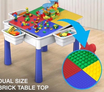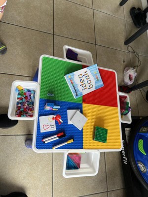 [This review was collected as part of a promotion.] I absolutely LOVE this table!!!! It has a Lego side and comes with two bags of legos. Then you easily flip the table top and you have a side for magnets and art! The storage bins help keep everything clean and organized. This table keeps my children busy for hours! When they are done doing one activity they are able to quickly start the next! If you have children or are buying a gift for a child this is a must buy!