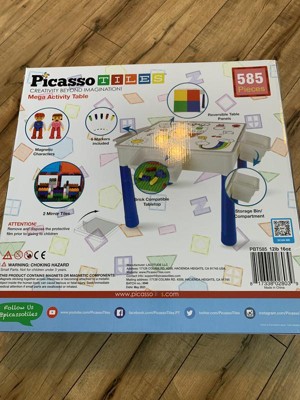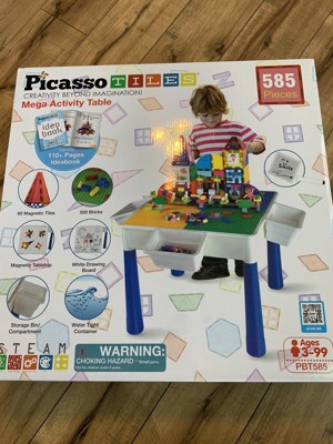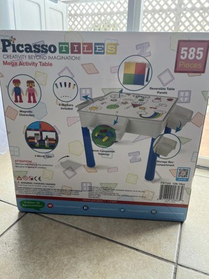 Product Name: PICASSO-TILES 585PCS Kids Activity Table with Magnetic Tiles & Building Bricks, STEM Learning Playset, Reversible Whiteboard, Storage Bins Add-On Toys