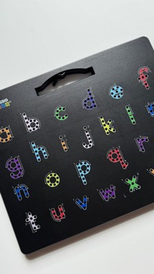 [This review was collected as part of a promotion.] This double-sided magnetic drawing board with upper and lower case alphabet is such a great way for kids to discover the letters. The pen with the magnetic end attracts the metal beads that make the letters. Then you have to push them down and start again. I like that it is sturdy and easy to clean. My toddler loves it!
