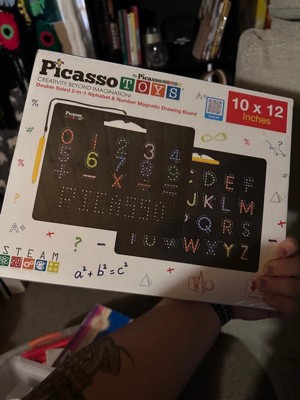 Product Name: PICASSO-TILES 2-in-1 Magnetic Drawing Board 12x10 Inch Bead Pad with Alphabet & Math, STEM Educational Toy, Reusable Erasable Writing Tablet for Kids