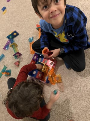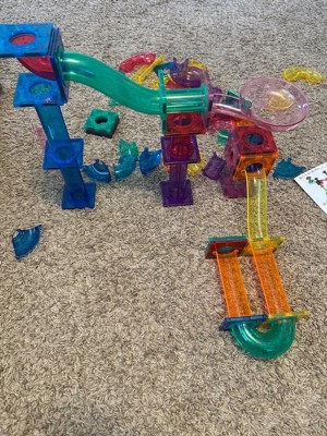 [This review was collected as part of a promotion.] Got these yesterday, and it has been 24 hours of non-stop fun. The kids (and my husband!) Are creating such interesting and creative structures and having so much fun watching the marbles travel through them. This set integrates really well with our existing magna tiles sets.