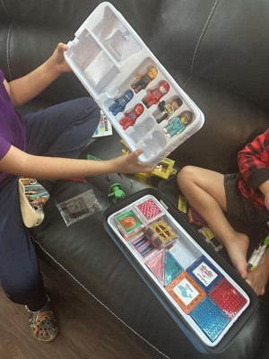 [This review was collected as part of a promotion.] We love these tiles! They are so versatile, my son (4) especially loves the truck and characters. But all the grown ups love playing with them too. We’ve made ball chutes and buildings. I got a magnetic contact paper and we’ve been hanging them on the wall! I will say these are larger than magnetites, if anyone already has those. I just really like that these are closed off for ball games or other builds and the doors and windows are adorable! The case is also very sturdy! I see these staying in our playroom until my kids are a lot bigger so I won’t have to be responsible for keeping up with them!