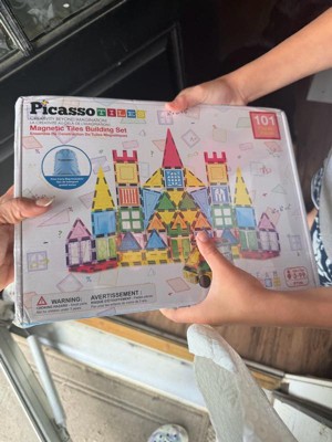 - PACKAGE INCLUDES: This 101-piece set contains a variety of magnetic tiles and building accessories to inspire limitless creativity. Inside, you’ll 1 tote bag, 83 pieces of Magnet Tiles in vibrant colors and diverse shapes, 8 windows, 8 door pieces and 1 car base. PICASSO-TILES STEM Building Blocks set perfect for creating everything from houses to castles and imaginative scenes.