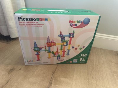 [This review was collected as part of a promotion.] Picasso Tiles are just so much fun. This Picasso Tiles 150 piece--marble run building blocks set provides hours of entertainment for the kids. This toy encourages creativity, problem-solving, & spatial awareness. I love that this is a STEM-focused toy. It's both fun and educational for my kids. I like that this toy challenges my kids, allows them to experiment with various track layouts for their ultimate "marble run". The steel marbles add quite the bit of excitement to this toy, and designing a multi-layered track for the steel marbles "run" keeps the kiddos entertained for hours. The magnetic tiles seem well made too, and the kids really love the variety of bright colors of all the tiles. Definitely an engaging and educational toy that provides fun and life learning skills. My kids are going to love playing with this Picasso Tiles kit for years to come.