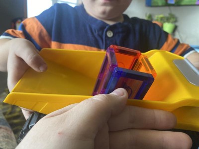[This review was collected as part of a promotion.] I love this building set! My son is using it to learn colors, shapes, counting, and building! My daughter will sit and play with him and make items out of the blocks. She’s made fences, houses, and a truck so far. The magnets are inside the plastic piece so no chance of it coming out unless you break it on purpose. It even comes with magnetic mirror pieces. Great present to give! Easy to clean up since they stick together if you mound them in a pile. KEEP THE BOX! It’s the perfect thing for storage!