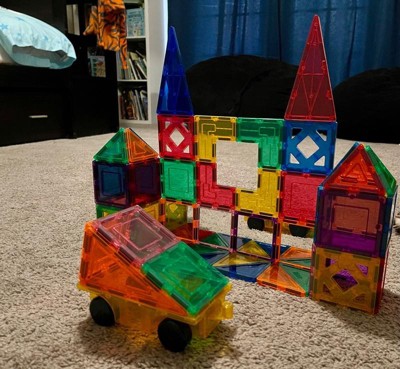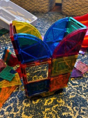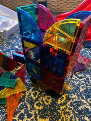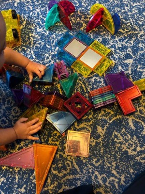 [This review was collected as part of a promotion.] I got this product free in exchange for my honest reviews. My kids are loving the magnetic tile blocks as soon as they received. So creative and comes with mirror tiles along with other shape tiles. Even one with the wheels. Vibrant colors.
