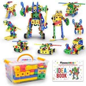 PicassoTiles 201 piece Engineering Kit (PTN201) comes with an idea book to enable children to construct over 50 building designs including 33 exploded step by step instructions. Be an engineer, architect, or designer, this construction set offers open-ended possibilities to nurture STEM skills, children creativity, intelligence, promote problem solving abilities, logical thinking, improve hand-eye coordination, gain strong sense of geometrical shapes and stay focused by playing.