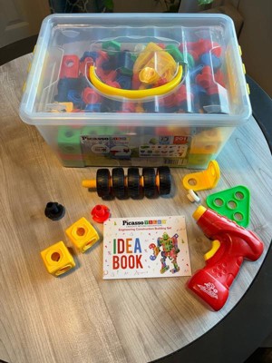 PicassoTiles STEM Learning Toys 201 Piece Building Block Kids Construction Engineering Kit Toy Blocks Children Early Education Playset w/Free IdeaBook, Power Drill, Clickable Ratchet, Age 3+ PTN201