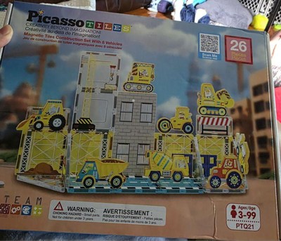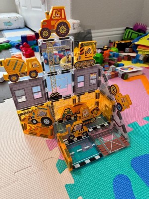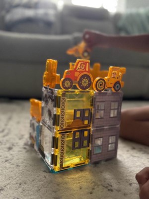 [This review was collected as part of a promotion.] My toddler, who absolutely loves all things construction vehicles, was instantly drawn to this set. The themed pieces and bright colors are super engaging, and we had fun building together. The construction vehicles and character tiles are really cute, but I was surprised by how few pieces actually came in the set. It felt a bit limited on its own, so thankfully we had other magnetic tiles at home to build something more complete. The magnets are strong and the quality is great, but I definitely wish it came with more tiles right out of the box.