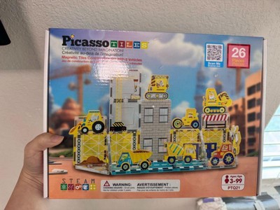 PICASSO-TILES Magnetic Tiles for Kids – Construction Theme 26PCS STEM Magnet Building Blocks Educational Toy