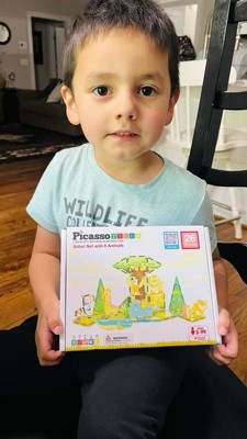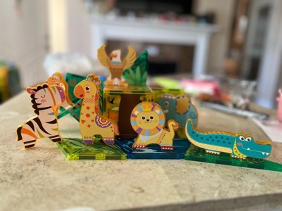 [This review was collected as part of a promotion.] We have been playing with this Picasso magnet tile building blocks safari themed for hours. So many ways to change where you want to put the animals. This is a 26 piece set. It comes with 8 adorable animals. Very durable. We have multiple sets of Picasso blocks. They are a brand I trust in for my kids to play with.