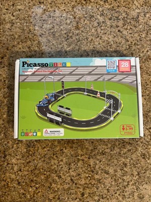 Product Name: PICASSO-TILES Race Track Magnetic Tiles for Kids with 2 Racing Cars – 28PCS STEM Construction Building Blocks Educational Toy Set