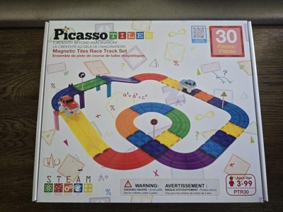 Product Name: PICASSO-TILES Race Track Magnetic Tiles for Kids with 2 Racing Cars – 30PCS STEM Construction Building Blocks Educational Toy Set