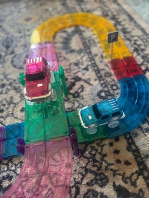 - BUILD YOUR BIGGEST IDEAS WITH MAGNETIC TILES RACE TRACK - EMPOWER KIDS TO DREAM DESIGN AND DISCOVER: - Promotes problem solving skills, hand-eye coordination, and trains fine motor skills. The 30 Piece construction race car stacking block kit features quick connect magnetized edges to easily put the pieces together to engineer the architectural structure and design simply via the laws of physics and power of magnets. Equipped with columns and slopes to allow creation of multi-layer 3D taller race track building and race car to go up and down at different levels and compete to win