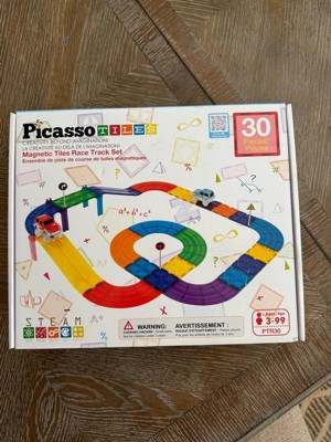 PICASSO-TILES Race Track Magnetic Tiles for Kids with 2 Racing Cars – 30PCS STEM Construction Building Blocks Educational Toy Set