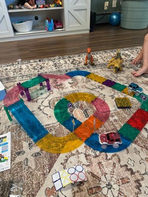 [This review was collected as part of a promotion.] These tiles were great for kids to play and be creative .They could create different tracks. They’re colorful and magnetic. The magnets could be a little stronger to hold because the tracks have to be aligned. But the kids enjoyed it. It comes with two cars and they could race. This was a great invention to keep kids entertained for hours.
