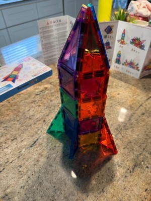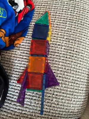 [This review was collected as part of a promotion.] This set of PicassoTiles was billed as a mini diamond collection travel size 30 piece rocket set. What that means is some of the tiles themselves have a slight “diamond” pattern. The “travel” really refers to this being a 30 piece set, otherwise there are no special travel features. Overall we found the magnets in these tiles to be a bit weak as compared to some of the counterpart products in the market. We were able to easily build the rocket; however we wouldn’t take these traveling because the build was pretty fragile.