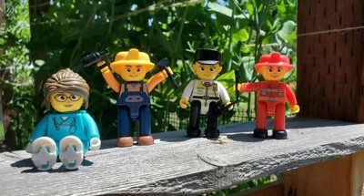 [This review was collected as part of a promotion.] My five year old loves to play with these figures. He likes that they are city builders. He has a very strong imagination and he builds things with his playdoh and sand and he pretends that the city workers helped him.