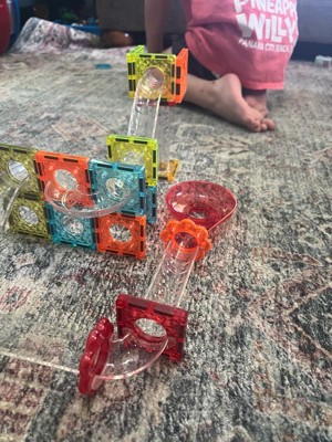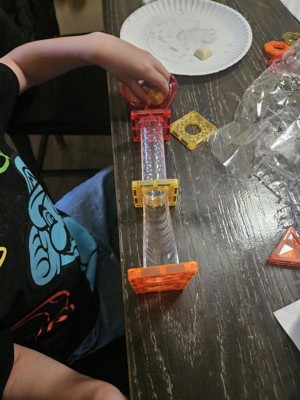 [This review was collected as part of a promotion.] My son was already a big fan of the regular size magnetic tiles but the little ones have made it easier for him to create even more intricate designs. He loves making obstacles with the tubes and funnel. 10/10 recommend.