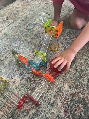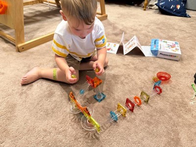 [This review was collected as part of a promotion.] Fun idea, hard to execute. We have had the larger version of these, by a different brand, with soooo many pieces. No matter which brand, they are always challenged to get the marble run to assemble correctly. I love the small size and colors of the Picasso set however. Perfect size for portability