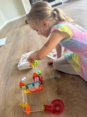 Unleash hours of educational enjoyment and imaginative play with the PICASSO-TILES Magnet Marble Run Building Tiles Set, a highly-rated magnetic marble runs construction toy that fosters creativity, hands-on learning, and child development. This thoughtfully designed educational building block marble race tracks set includes magnetic tiles pieces in vibrant, translucent colors and various geometric shapes such as squares and triangles; and marbles for marble runs. Children can delve into architecture, design, and engineering by constructing colorful towers, Buildings, and more — all while grasping the basics of STEM (Science, Technology, Engineering, Mathematics / Math). The magnetic tiles marble run for toddlers and kids are crafted from safe, BPA-free plastic and feature strong magnets that securely connect each tile, promoting frustration-free building. These durable Marble Run magnetic blocks aid in enhancing fine motor skills, spatial thinking, and logical reasoning. Suitable for boys and girls aged 3 and above, this magnetic tile toy / marble games is an excellent way to reduce screen time and encourage open-ended play. Unlike restrictive toys, these magnetic Marble run set allow your son or daughter, child / children to experiment, create, and explore numerous configurations. Whether your child is building a miniature racing track or exploring symmetry and balance, the PICASSO-TILES Magnetic Tiles Marble Run Set sparks innovation and learning in an engaging manner. These creative toys Marble Run is perfect for home and school settings, daycare centers, classroom activities, and family game nights. Parents, teachers, and therapists appreciate this magnetic marble game set for its educational benefits and adaptability. More than just a toy, STEM toys for kids are a tool that supports childhood development across various areas.