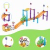 [This review was collected as part of a promotion.] My 4 year old loves it! We set it up and she’s content. It will go well with her other magnetic tile sets and expand her play so much! There are grooves in the “road” and “ramp” tiles to help the vehicles stay on the track and not veer off. Super easy to manipulate and change up the tracks. Very happy with this magnetic tile set.