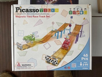 Product Name: PICASSO-TILES Race Track Magnetic Tiles for Kids with 2 Racing Cars – 45PCS STEM Construction Building Blocks Educational Toy Set