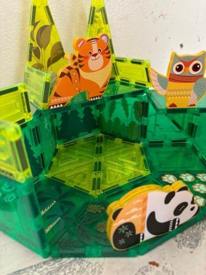- BUILD YOUR BIGGEST IDEAS WITH MAGNETIC TILES - EMPOWER KIDS TO DREAM DESIGN AND DISCOVER: Entice your child's creativity and imagination with this forest-themed STEAM educational playset that includes 48 magnet tile pieces (27 theme printed) and a wild cast of 8 magnetic forest animals, bear, fox, monkey, koala, tiger, squirrel, panda, and an owl. Create stories with new woodland friends, and bring home the fun of nature, all while learning, one magnetic piece at a time.