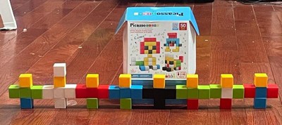 [This review was collected as part of a promotion.] The PicassoTiles 50 Piece Pixel Magnetic Puzzle Cube is a great idea for anyone who enjoys building blocks. The magnets are really small and hold fairly well but not great. As soon as you pick the item that was built up, it pretty much comes apart. You have to leave it laying flat to enjoy it any at all. The blocks are a good size for toddlers to hold and play with.