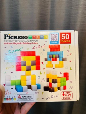 PicassoTiles 50 piece magnetic puzzle cube set (PMC50) features easy click and collect magnet connectors hidden in the cubes to allow intuitive play and fun educational STEM skill learning experiences. Facilitate problem solving and fine motor skills, spatial reasoning, logic training, critical thinking, hand-eye coordination, and child brain development, by promoting creativity. If you can imagine it, you can build it and create it!