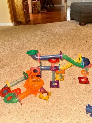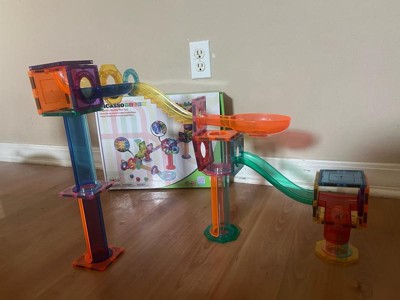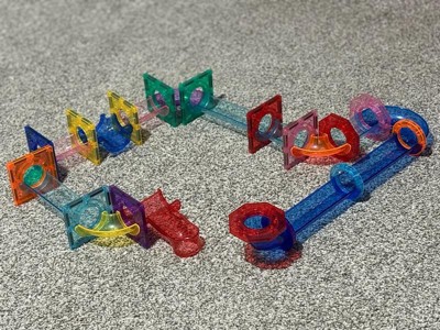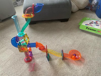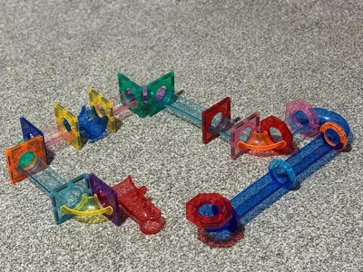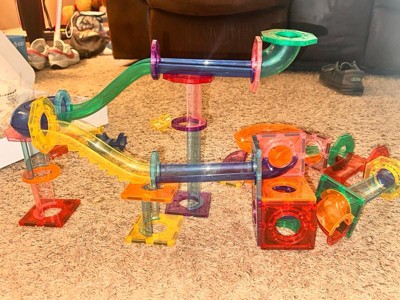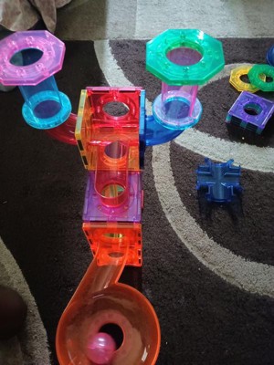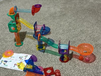 - BUILD YOUR BIGGEST IDEAS WITH MARBLE RUN MAGNETIC TILES - EMPOWER KIDS TO DREAM DESIGN AND DISCOVER: Promotes problem solving skills, hand-eye coordination, and trains fine motor skills. The construction marble run race track toy stacking building block kit features quick connect magnetized translucent color tiles to allow children to easily put the pieces together to create the designs of their own masterpiece simply via using the laws of physics, gravity, brain power, imagination and power of magnets
