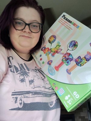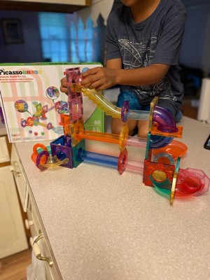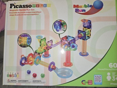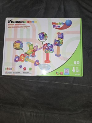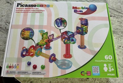 [This review was collected as part of a promotion.] This 60 piece marble run building block set had my kids building for hours! There were so many different designs and combinations that they can make with all the different colored shapes and designs. The pieces are very durable made with very strong magnets inside that definitely test tat durability while keeping safety in mind. The compatabilies are endless with this new great Picasso toy!