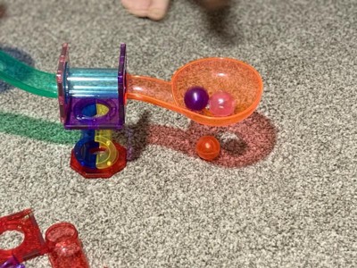 [This review was collected as part of a promotion.] Such an awesome toy to not only play with but to use your mind when building your run for the marbles. The magnetic tiles are compatible with other magnetic tiles to make your runs even better. The pieces are all very durable and make for hours of fun! Make a new run every time you play!