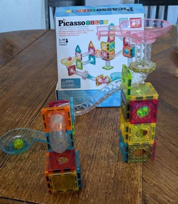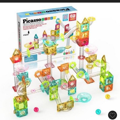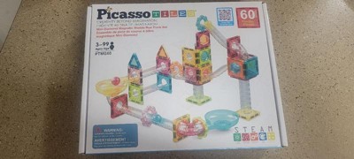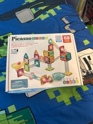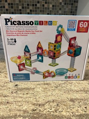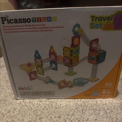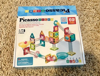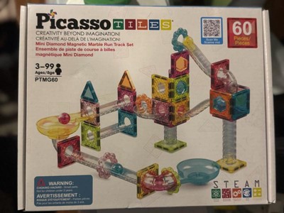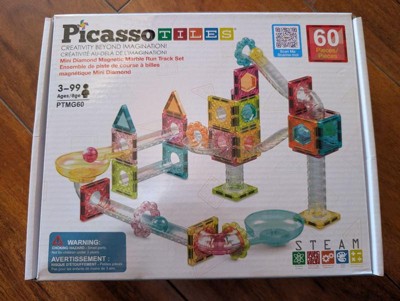 - BUILD YOUR BIGGEST IDEAS WITH MARBLE RUN MAGNETIC TILES - EMPOWER KIDS TO DREAM DESIGN AND DISCOVER:Infinite Possibilities, Expandable for Masterpiece Creations. The travel size magnetic marble run track building block toy includes 60 mini diamond tiles with a unique diamond reflection surface, complemented by marble run race pieces. Use it alone or combine with other PICASSO-TILES mini magnet sets for seamless integration, offering limitless construction potential