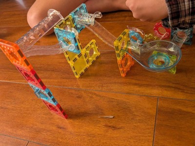 [This review was collected as part of a promotion.] This was a very cool little building set! My son loved them, he was so excited when we got this set because they use these at his school as well! We had so much fun building a little marble course, and it was easy to put together and stayed together pretty well! My only complaint is that the magnetic pieces didn't stay on very well but those pieces are more decorative, and didn't affect the actual track.