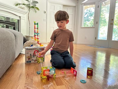 [This review was collected as part of a promotion.] My five years old son loves playing this marble run set a lot. He can build different layouts from magnetic tiles and each time it turns out great! Great educational and creative toy for kids from 3 years and more.
