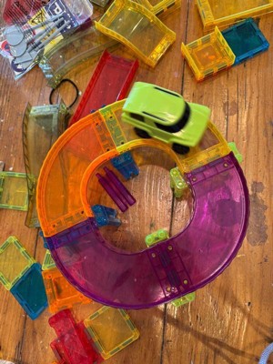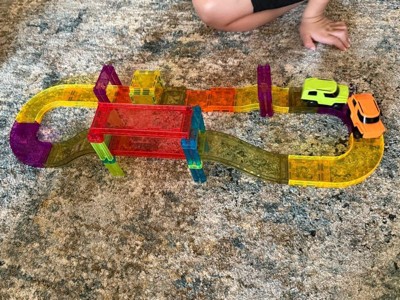 [This review was collected as part of a promotion.] This magnetic car track set is amazing! My kids love building different tracks and racing cars on them. The magnets are strong, the pieces are colorful and easy to connect. Great for creativity and motor skills. Keeps children engaged for hours. Highly recommend for all ages!