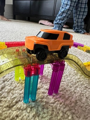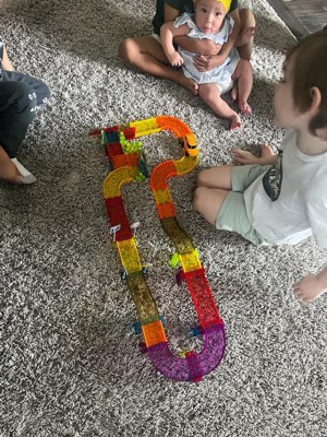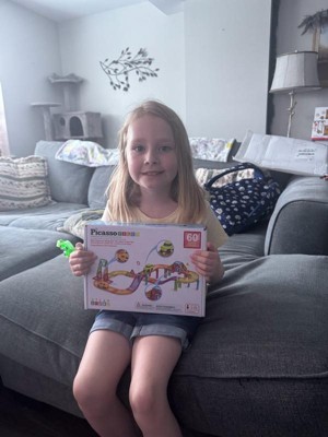 [This review was collected as part of a promotion.] I got the PicassoTiles 60pc Travel Magnet Tile Race Track with Car Playset. Her excited is as a reward for me, and she absolutely loves it! The magnetic tiles snap together easily, allowing her to build creative tracks that keep her engaged for hours. The LED car adds an exciting touch, and the compact size makes it perfect for travel. It's a fun, educational toy that combines creativity with hands-on play.