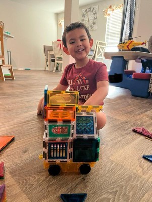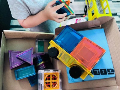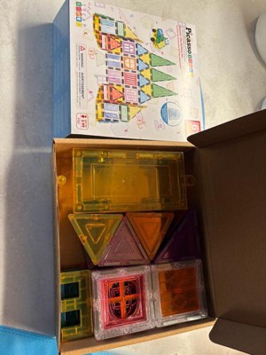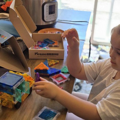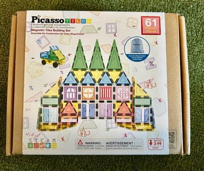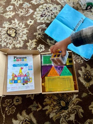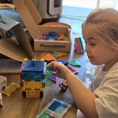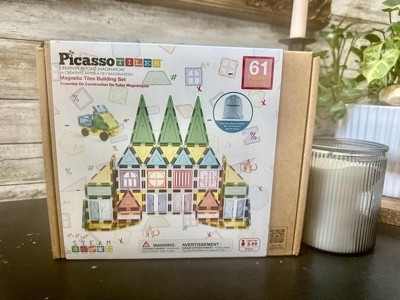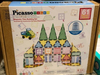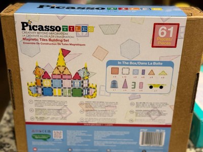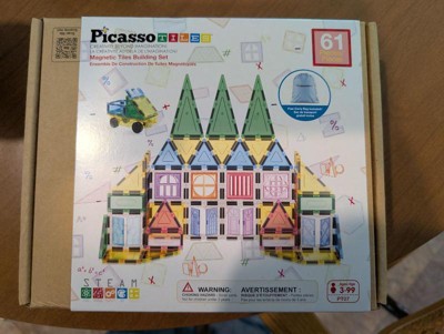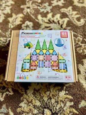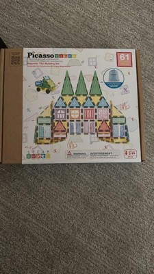 [This review was collected as part of a promotion.] The 61-piece Picasso Magnetic Tiles toy set is colorful and fun to use for building different shapes and designs. It’s pretty versatile, but the magnets aren’t very strong, so structures can fall apart easily. Sometimes you have to move pieces around to get them to fit together right. Also, it seems like there are fewer pieces than what the product pictures show, which is a bit disappointing. The car base is really big, so the product image does not give you real perspective of the actual product.