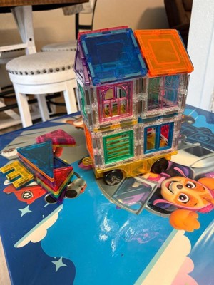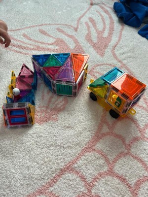 [This review was collected as part of a promotion.] These are really fun. The whole family can enjoy them for quite a while. They are very colorful and have so many options for building which is great. Building things from the shapes and creating different kinds of vehicles with wheeled toy is educational and fun. The storage bag was nice because it makes clean up super easy. My only reason for 4 stars is because it’s 61 pieces which can be a bit deceiving based on the image because someone may think they are getting 61 magnetic blocks but the 61 is including the window inserts. I think there are around 42 actual magnetic blocks in this set.