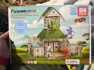 - BUILD YOUR BIGGEST IDEAS WITH MAGNETIC TILES - EMPOWER KIDS TO DREAM DESIGN AND DISCOVER: Immerse yourself in a world of fun with PICASSO-TILES 64pc Ninja Dojo House Themed playset, featuring 4 ninja character action figures with magnetized feet, 6 ninja weapon accessories, 52 magnet building pieces, and 2 surfaced magnetic brick tiles. Inspire hours of self-entertainment, imagination, and storytelling with our captivating both interior and exterior ninja-themed magnet tile toy set.