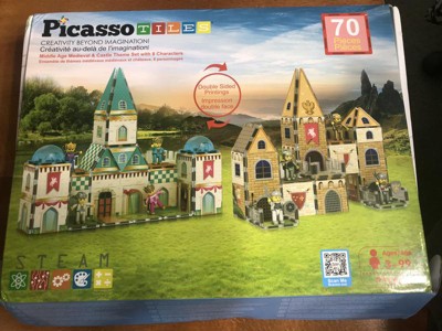 - BUILD YOUR BIGGEST IDEAS WITH MAGNETIC TILES - EMPOWER KIDS TO DREAM DESIGN AND DISCOVER: Unleash boundless creativity with PICASSO-TILES 70pc Middle Age Medieval and Castle Theme, which includes 8 Characters, 8 character figure accessories, and 54 building pieces. Ignite your child's imagination and storytelling with our double sided castle magnet buildings. This magnetic toy set series will spark creative play and entertainment for hours. Create your own masterpiece today!