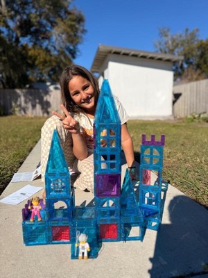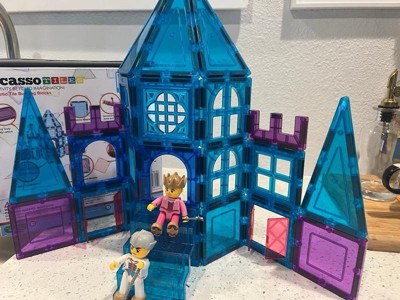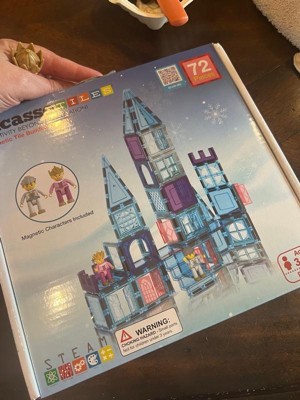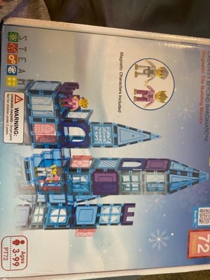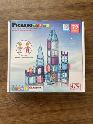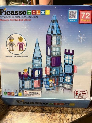 [This review was collected as part of a promotion.] PicassoTiles 72pc Winter Ice Castle Theme Magnet Building Tiles with 2 Characters and Stairs is quite an amazing product! I love that this product promotes imagination and learning in such a fun and creative way!