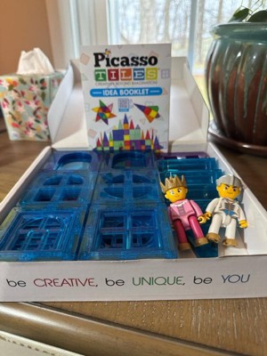 [This review was collected as part of a promotion.] My kids love playing with the Picasso Magnetic Tiles. 72 well constructed, sturdy tiles, and 2 magnetic people. I love the movable doors and stairsteps. The kids are planning out their next structure. There are also several small pieces - the people and doors can all be taken apart. There are several different tile designs. Endless creations and fun.