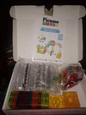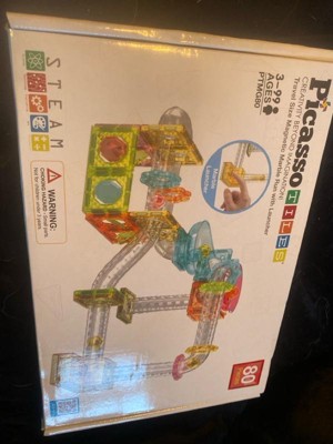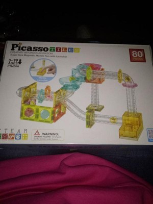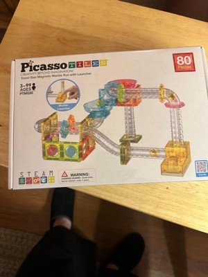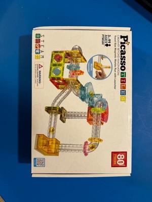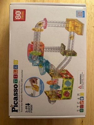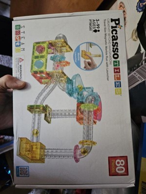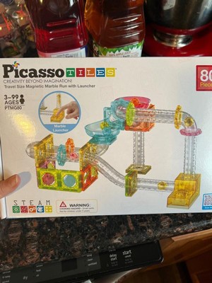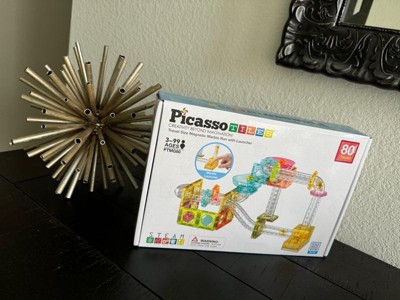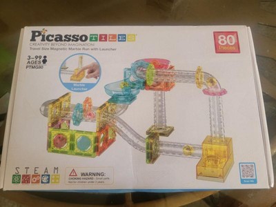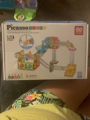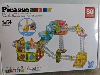 - BUILD YOUR BIGGEST IDEAS WITH MARBLE RUN MAGNETIC TILES - EMPOWER KIDS TO DREAM DESIGN AND DISCOVER: Infinite Possibilities, Expandable for Masterpiece Creations. The travel size magnetic marble run track building block toy includes 80 pcs magnet tiles with a unique diamond reflection surface, complemented by marble run race pieces. Use it alone or combine with other PICASSO-TILES mini magnet sets for seamless integration, offering limitless construction potential