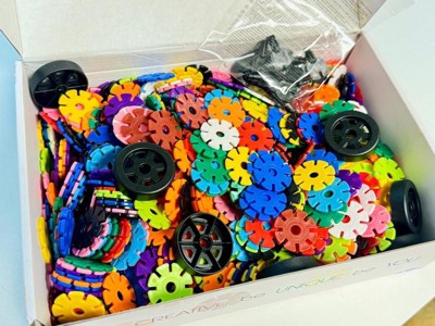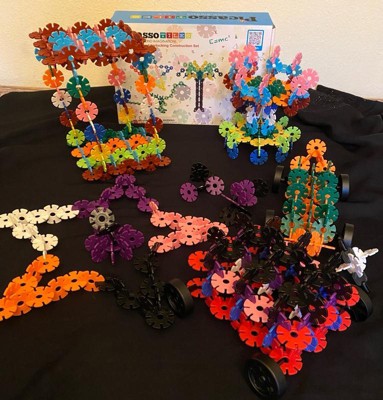 [This review was collected as part of a promotion.] This is an impressive set of building chips. 800 pieces in every color is more than enough to build whatever you want. The pieces connect together easily and it comes with 10 tires and rods to attach them. Since they are pinwheel-shaped, you can connect other chips in any slots. The pieces are sturdy, almost as indestructible as Legos, so they are safe with little hands who accidentally break things easily. It’s amazing for builders and creatives of all ages. My only complaint is that it comes with a booklet with ideas but doesn’t show you how to assemble them. I would love more ideas for making things. The box is a great place to keep them—no additional storage needed.