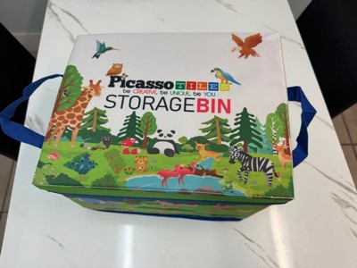 Product Name: PICASSO-TILES Foldable Toy Storage Chest, Forest Animal Magnetic Tile Organizer Bin with Lid & Handles, STEM Educational Playroom Toy for Kids