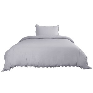 PiccoCasa 2 Pcs Soft Washed Polyester Pompon Bedding Duvet Cover Set - 1 of 4